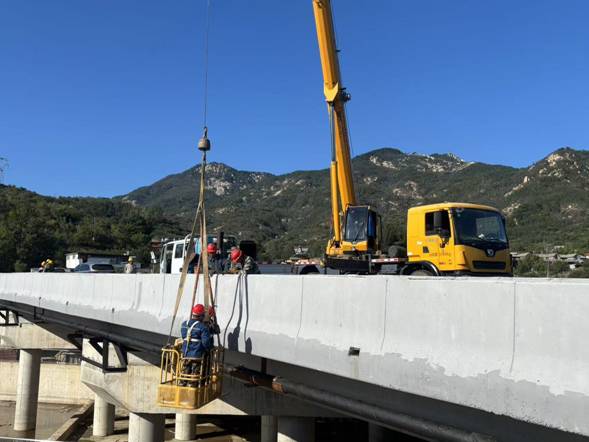 由于該工程管線敷設(shè)橫跨劉家莊水庫(kù)泄洪口,位置特殊、地形地貌復(fù)雜,管道連接方案的制定、技術(shù)難度分析、? ?? ?? 施工設(shè)備材料應(yīng)用、安全風(fēng)險(xiǎn)控制及進(jìn)度管理等各項(xiàng)工作都面臨一定挑戰(zhàn)。參建工作人員一起反復(fù)研究,分析施工方案,探討施工過(guò)程中的難度細(xì)節(jié),經(jīng)多方協(xié)調(diào),管道跨橋方案終于落地。