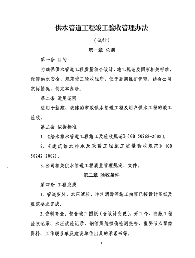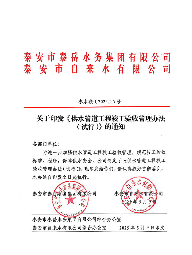 您當(dāng)前位置》政策法規(guī)》泰安市自來水有限公司給水管道工程施工及驗(yàn)收規(guī)定