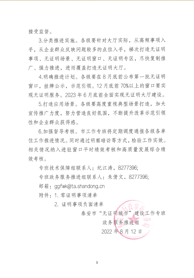 您當(dāng)前位置》政策法規(guī)》泰安市“無(wú)證明城市”建設(shè)工作專(zhuān)班關(guān)于開(kāi)展“無(wú)證明大廳”創(chuàng)建活動(dòng)的通知